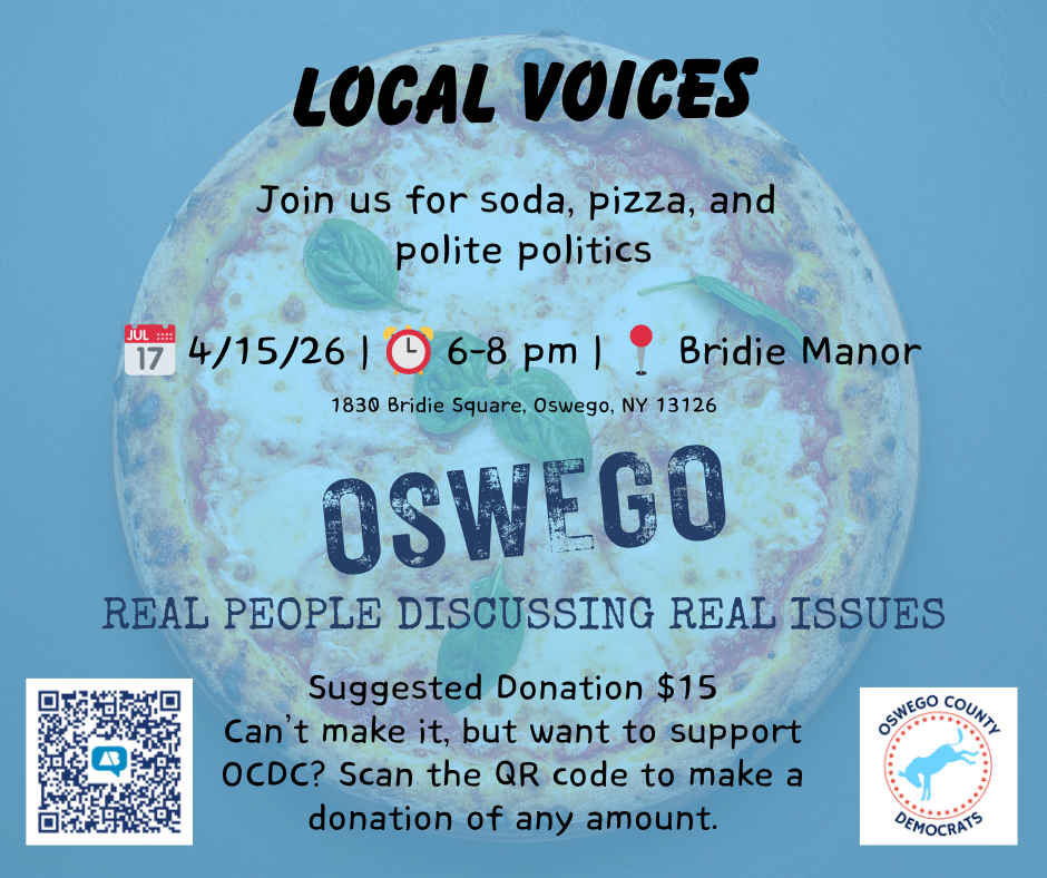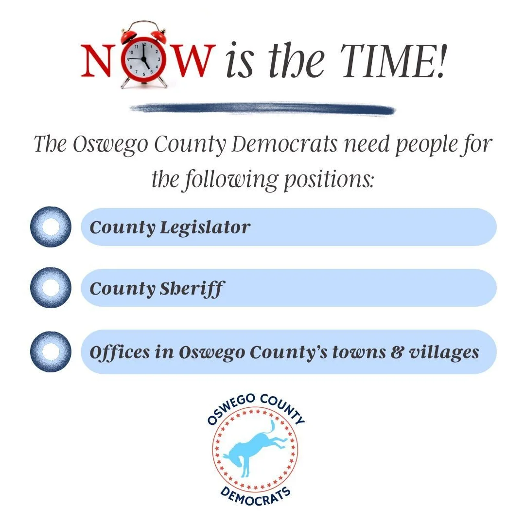 Click here to donate to the committee to support the work of recruiting and electing great Democratic candidates. Prefer a non-digital donation? Please email us for details at countydems@oswegodemocrats.com